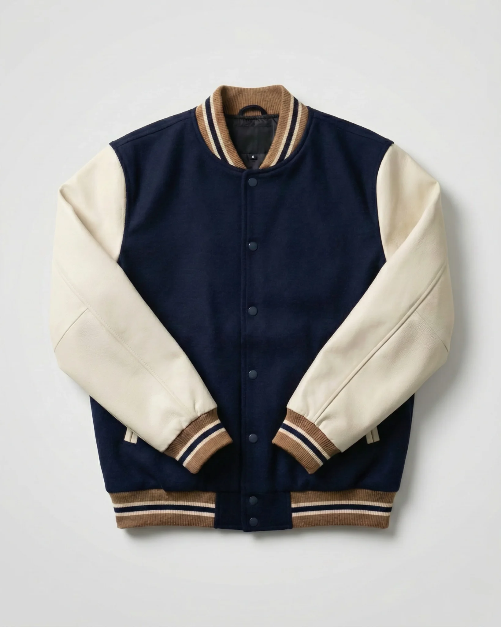 Our varsity jackets are built as statement pieces, designed to represent teams, colleges, and identities. The jacket can be fully customized across materials and details, from the body fabric to sleeves, buttons, and trims. Options include fleece bodies paired with leather or fabric sleeves, allowing you to choose both look and feel.